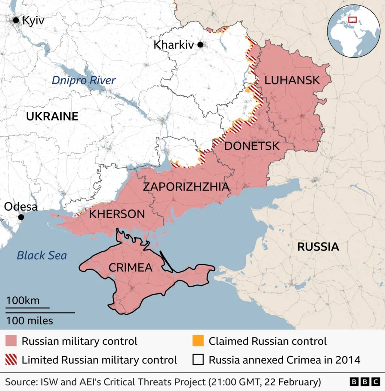 La patru ani de la invazia la scară largă declanșată în februarie 2022, Rusia controlează aproximativ o cincime din teritoriul Ucrainei. Totuși, după cuceririle rapide din primele luni ale războiului, când forțele ruse au ocupat zone extinse din est și sud și au creat un coridor terestru către Crimeea, anexată ilegal în 2014, ofensiva Moscovei a încetinit considerabil.