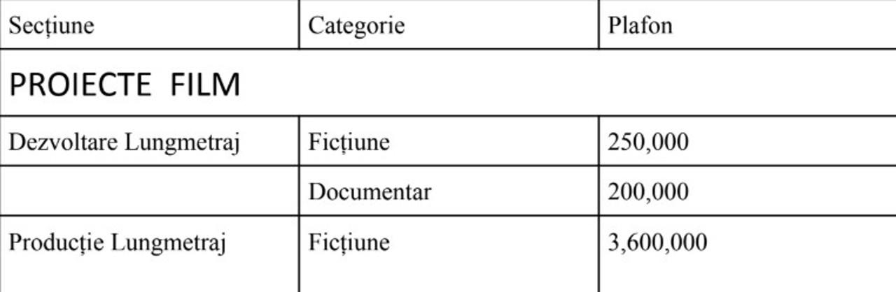 Bugetul total alocat pentru această sesiune este de 20 de milioane de lei, iar plafoanele de finanțare pentru proiectele de film și seriale TV sunt stabilite pe categorii.