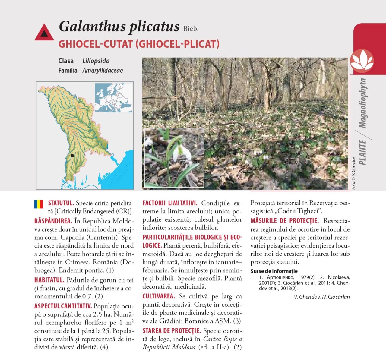 Snowdrops, scientifically known as Galanthus nivalis, are listed in the latest edition of the Red Book of the Republic of Moldova, published in 2015. According to the publication, snowdrops are both decorative and medicinal plants. They reproduce through seeds and bulbs, bloom at the end of March, and, during milder winters, can even bloom in January or February.