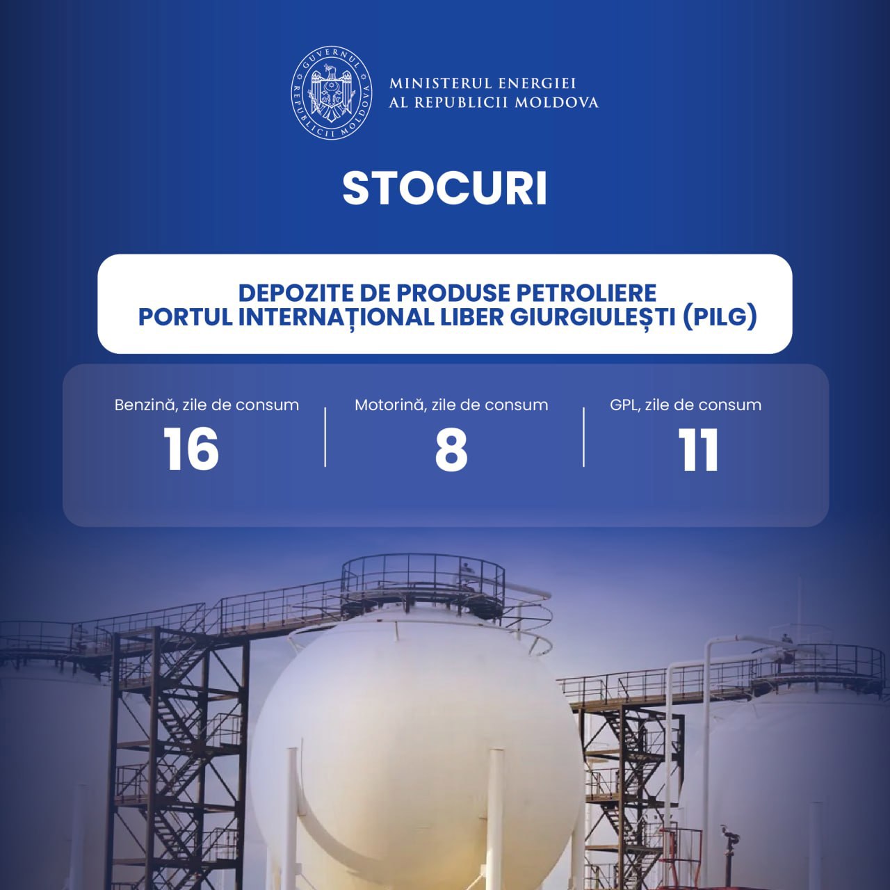 Stocurile disponibile acoperă până la 16 zile de consum de benzină, 11 zile de consum de gaze petroliere lichefiate (GPL) și opt zile de consum de motorină.
