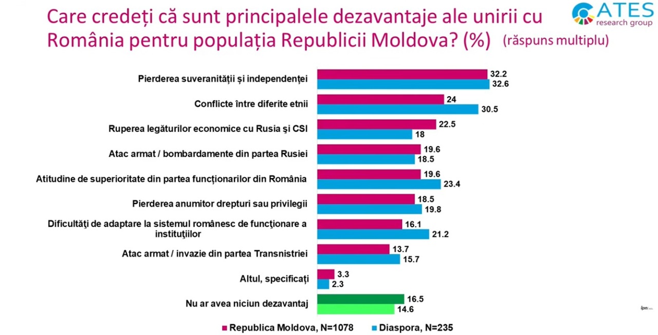 Conversely, the most commonly cited disadvantage is the potential loss of sovereignty and independence, consistently highlighted in both the Republic of Moldova and the diaspora. Other concerns include interethnic tensions and the possible severance of ties with Russia.