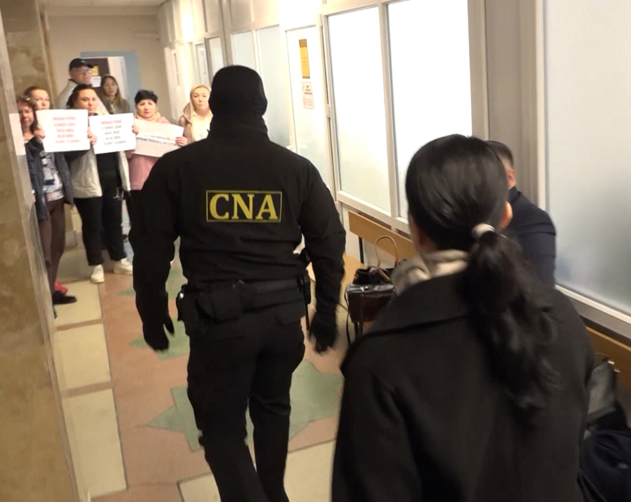 Primarul orașului Durlești, Eleonora Șaran, a fost prima adusă în fața instanței. Aceasta a fost escortată în sală, pe fundalul unui protest de susținere desfășurat în incinta instanței.