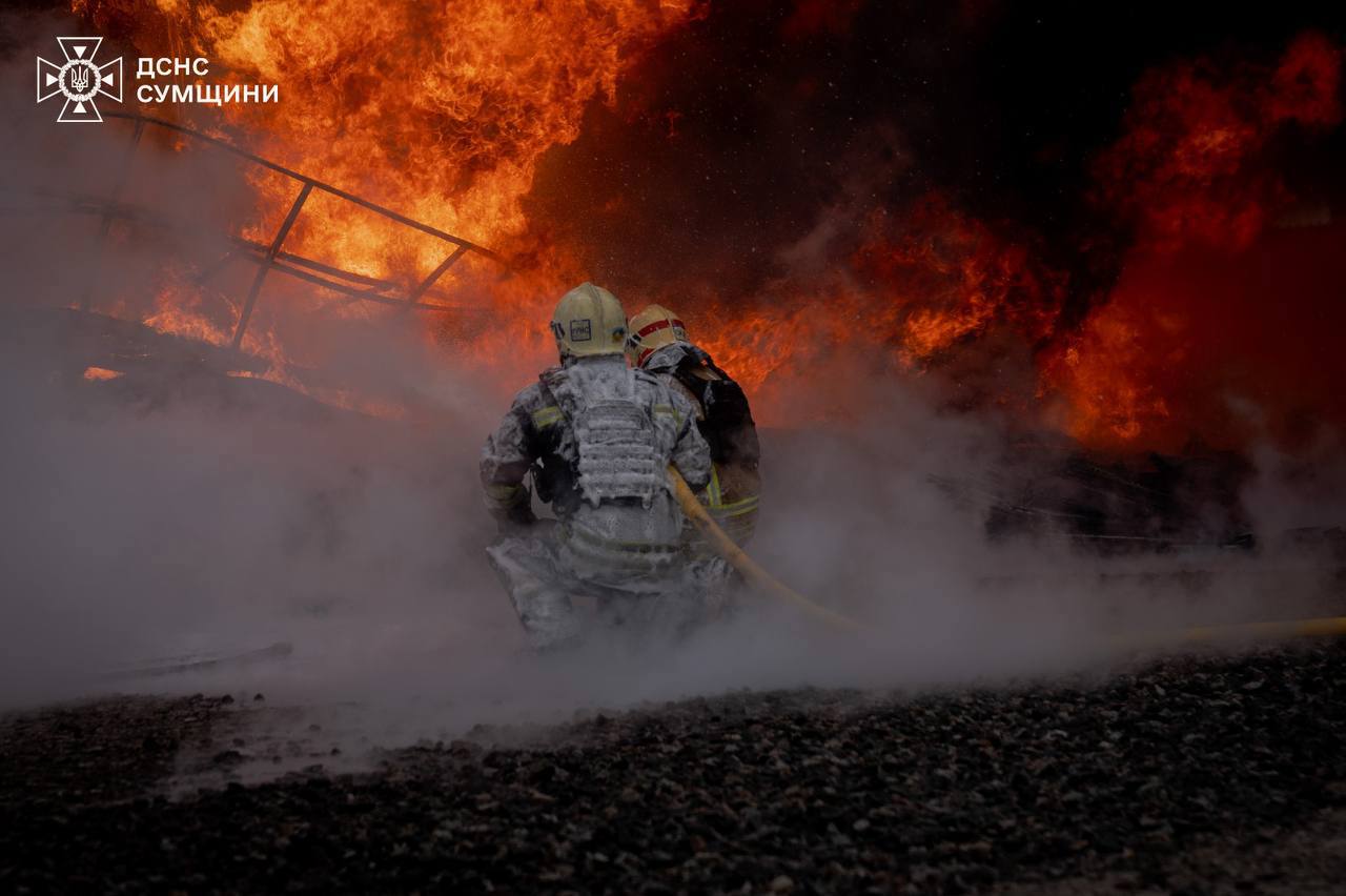 În Sumî, o dronă a lovit zona industrială a orașului în cursul dimineții, provocând un incendiu care a fost ulterior lichidat de pompieri.