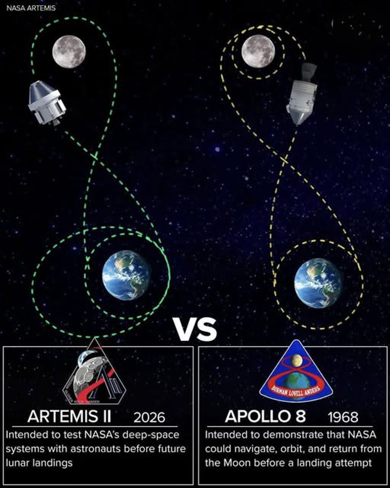 Traiectoria parcursă de Orion nu a fost aleasă pentru a stabili un record, ci din considerente de siguranță. Dacă motoarele ar fi cedat, forța gravitațională combinată a Pământului și a Lunii ar fi putut aduce capsula înapoi fără a utiliza niciun motor de propulsie.