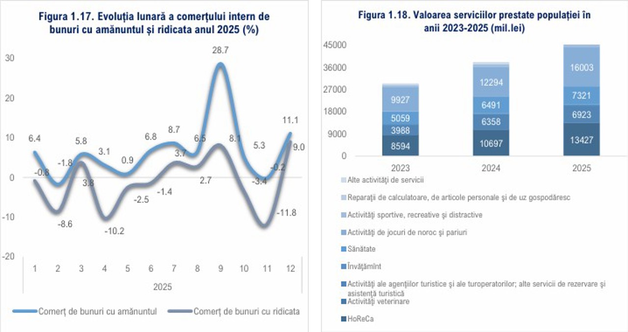 În aceeași perioadă, comerțul cu amănuntul a avansat cu circa 6% față de anul 2024, iar serviciile de turism au înregistrat o creștere de 8.7% comparativ cu anul precedent.