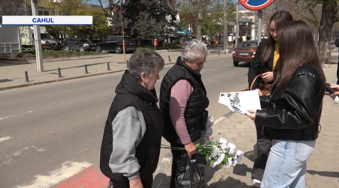 La Cahul, voluntarii au distribuit pliante informative despre foamete și victimele regimului, pentru a informa oamenii despre acele atrocități.