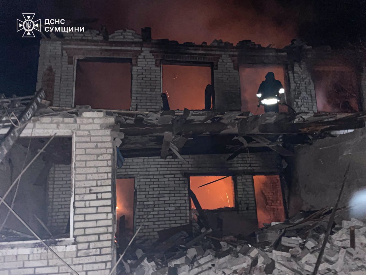 Dronele de atac rusești au lovit și regiunea Sumî, țintind zone rezidențiale. În urma atacului, mai multe locuințe au fost distruse și au izbucnit incendii. Pompierii au intervenit pentru stingerea acestora și au verificat zonele afectate.