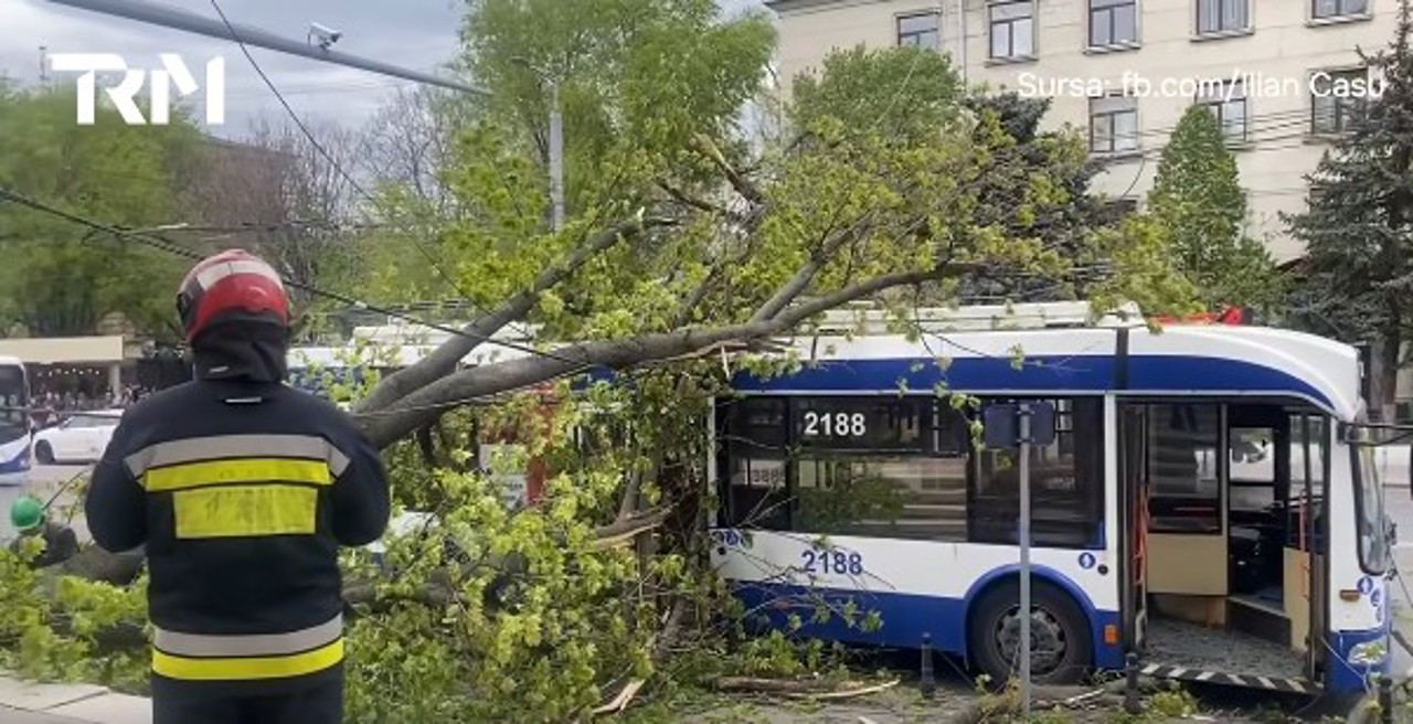 Vântul puternic face ravagii în capitală. O creangă masivă a căzut peste un troleibuz care circula pe bulevardul „Ștefan cel Mare și Sfânt”. Un pieton a fost, la propriu, la un pas de a fi rănit. Și pasagerii aflați în mijlocul de transport au scăpat doar cu o sperietură zdravănă. În sectorul Buiucani a fost înregistrat un incident similar. Un arbore s-a prăbușit peste un teren de joacă unde se aflau două persoane. În urma condițiilor meteorologice nefavorabile, au fost înregistrate incidente și în alte regiuni ale țării.