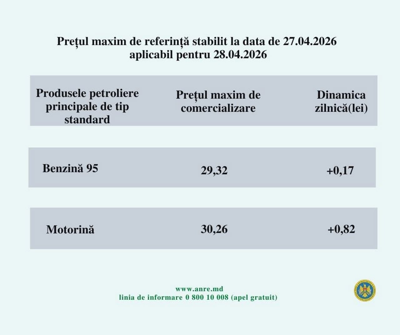 Цены на топливо в Молдове снова пошли вверх. Согласно расчетам НАРЭ, дизель завтра подорожает на 82 бана и будет стоит до 30 леев 26 банов за литр. Бензин на заправках будут продавать максимум за 29 леев 32 бана - это на 17 банов дороже, чем сегодня.