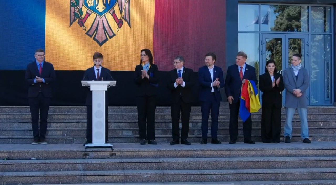 „În spatele acestui drapel stau cei care au luptat pentru independența și integritatea R. Moldova. Slavă eroilor care au căzut pentru țară! Stau cei care au apărat dreptul nostru de a vorbi limba română și de a reveni la alfabetul latin. Stau cei care au rezistat represiunilor, deportărilor, foametei și nedreptăților regimurilor totalitare. Ne amintește că nu suntem singuri, că aparținem unii comunități, că avem o istorie, o limbă, o cultură și un viitor de apărat. Dragi elevi, să priviți acest drapel cu respect, precum și cu responsabilitate. El nu este doar moștenirea trecutului, el este și angajamentul vostru pentru viitor”, a subliniat ministrul Educației și Cercetării.