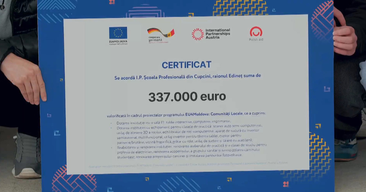 Școala Profesională din orașul Cupcini a beneficiat de investiții majore în infrastructură, digitalizare și dotarea atelierelor de practică, în cadrul Programului EU4Moldova Comunități Locale, finanțat de Uniunea Europeană și Guvernul Austriei. Valoarea totală a investiției se ridică la aproximativ 337.000 de euro, iar impactul direct vizează circa 400-450 de elevi și 70 de profesori.