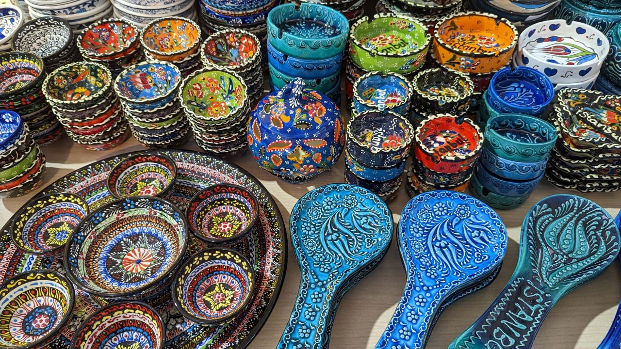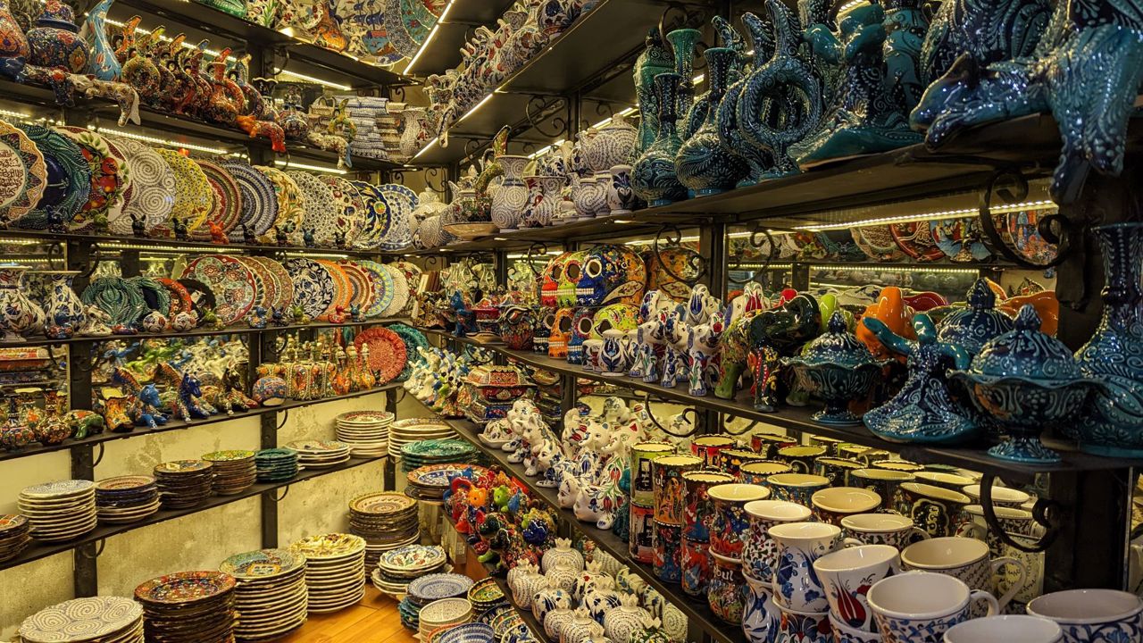 Istoria scrisă este destul de captivantă, dar adevărata poveste începe atunci când intri în Bazar: culori, arome, forme de tot felul. În unul dintre magazine vinde ceramica Iamo, așa îi zic prietenii prescurtat. De fapt il cheama Emleha, este un prenume rar întâlnit în Turcia, explică bărbatul. „Ceramică, lucruri confecționate manual, pictate manual. Noi facem acest lucru de circa 40 de ani, cu unchiul meu, tatăl meu, deci este o afacere de familie”, susține antreprenorul.