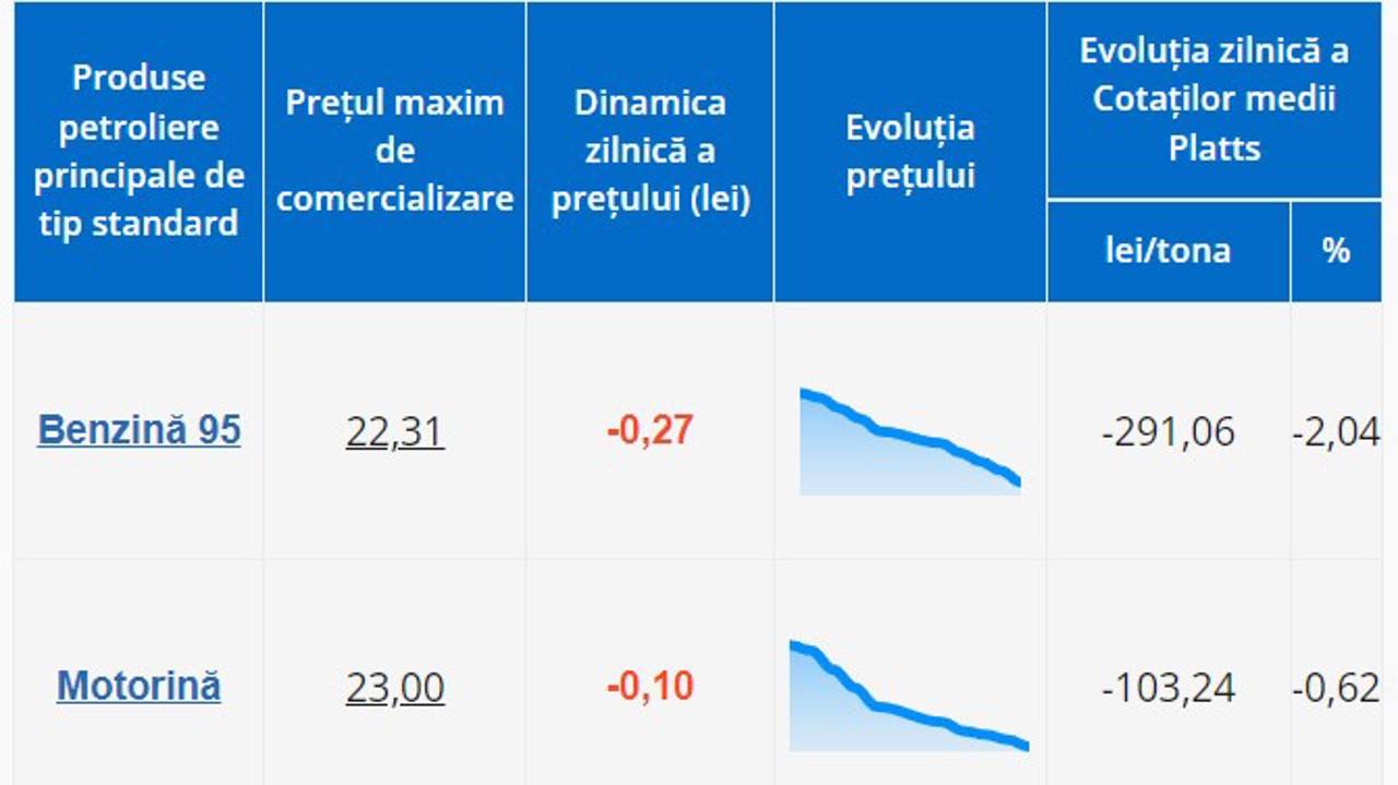 Carburanții continuă să se ieftinească. Agenția Națională pentru Reglementare în Energetică (ANRE) publicat noile prețuri plafon la benzină și motorină valabile în acest weekend.