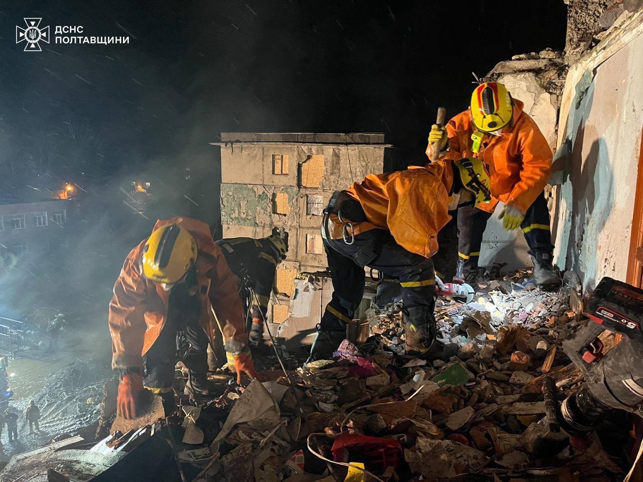 The death toll in the Poltava missile attack has risen to 12, including two children, The Kyiv Independent reported on February 2nd, at 7:30 AM. Search and rescue operations are underway at the attack site.