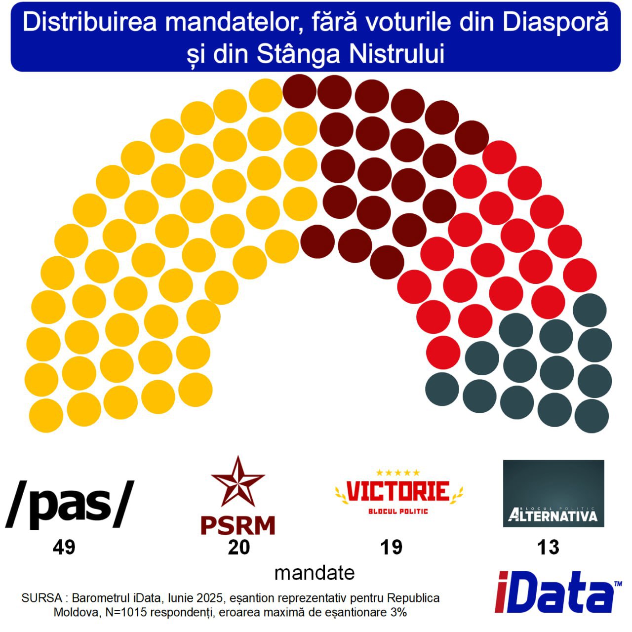 Если бы в ближайшее воскресенье состоялись выборы, в парламент прошли бы четыре партии. Об этом 30 июня сообщила компания iData. Согласно представленным данным, в четверку лидеров вошли бы партия "Действие и солидарность", ПСРМ, а также политические блоки "Победа" и "Альтернатива".