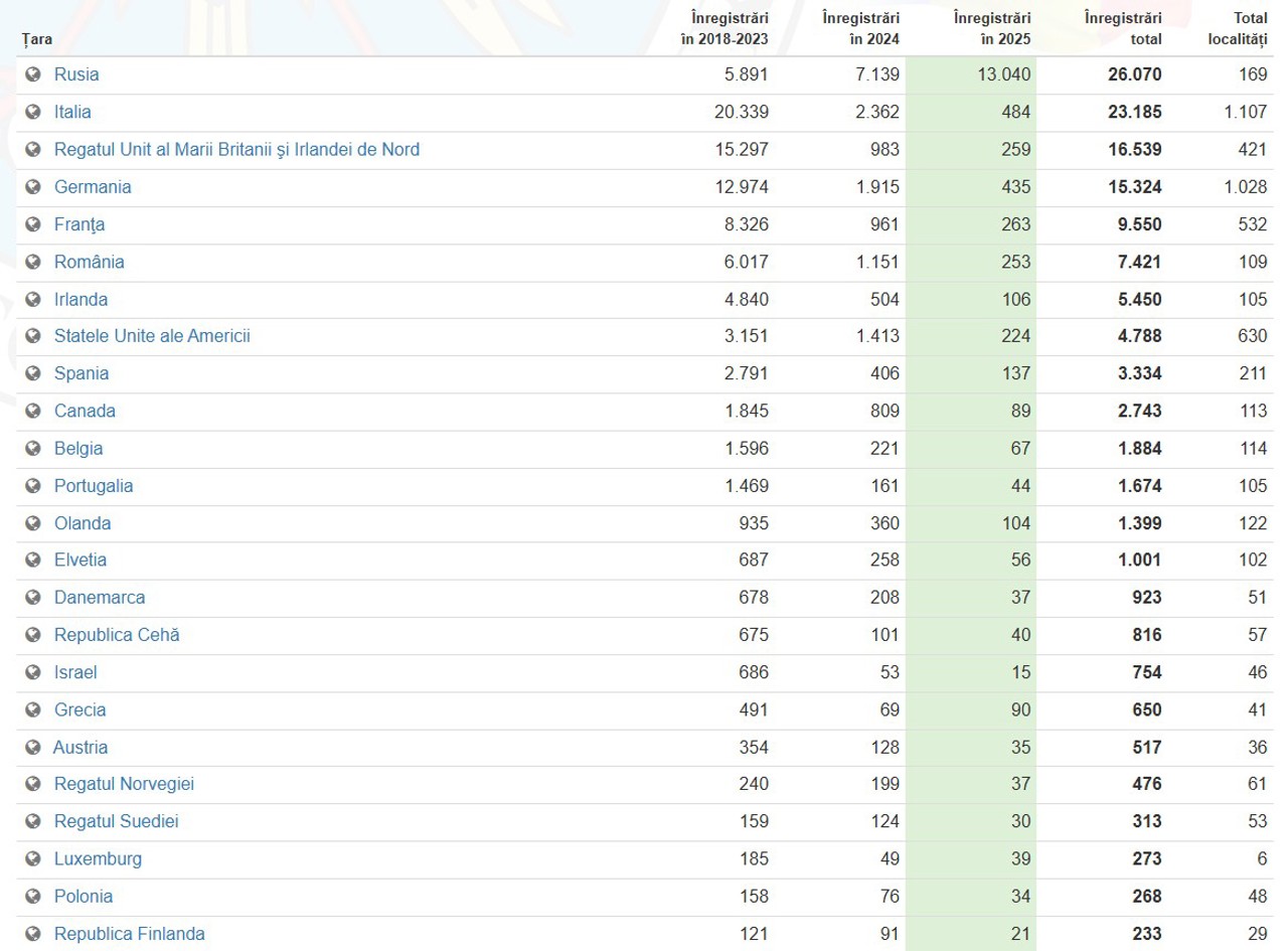In total, 127,163 Moldovans from 5,516 localities in various countries have pre-registered on the CEC platform since 2018. The largest groups are from Russia (26,070), Italy (23,185), the United Kingdom (16,539), Germany (15,324), France (9,550), and Romania (7,421).