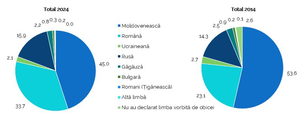 About 85% of the inhabitants of the Republic of Moldova declare themselves Romanian/Moldovan, according to the final results of the 2024 Population and Housing Census, presented on October 20 by the National Bureau of Statistics (NBS). Also, 79.9% of the population declared Romanian and "Moldovan" as their mother tongue.