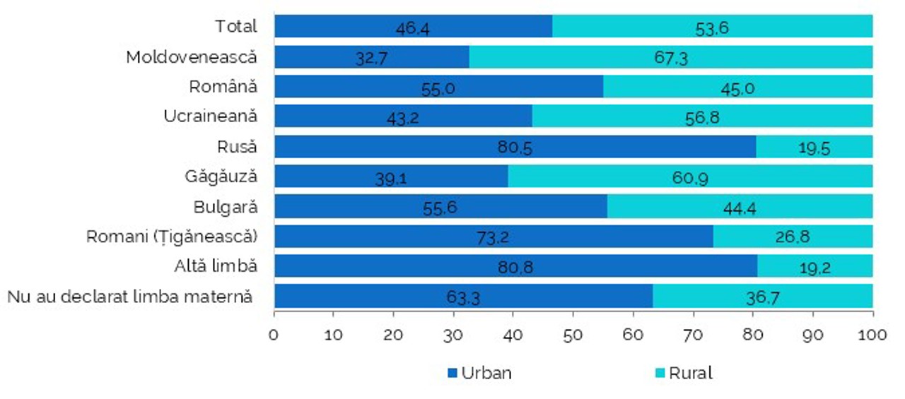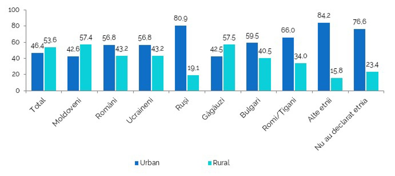 The rural population predominates among people who declared themselves Moldovans – 57.4% and Gagauz – 57.5%.