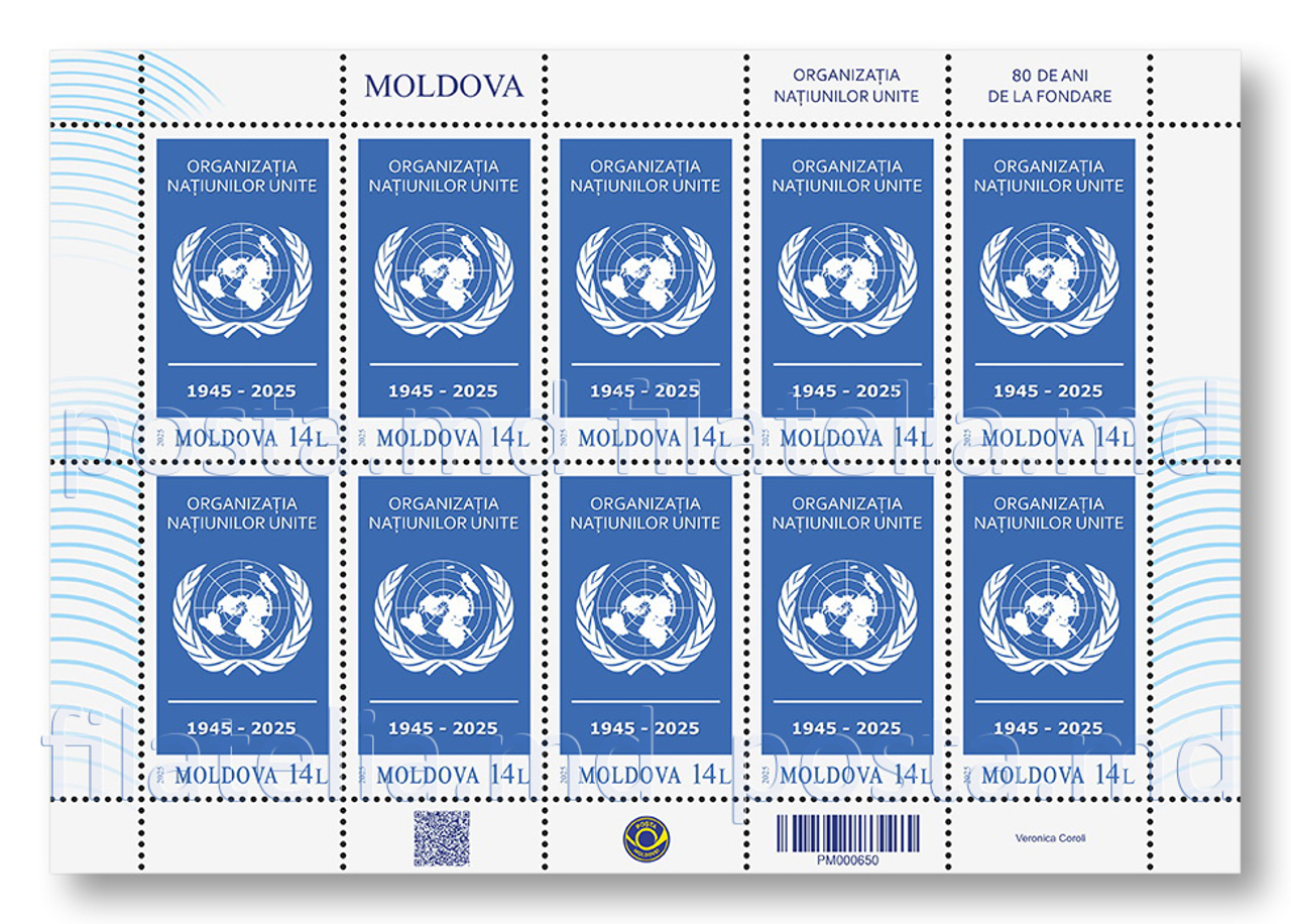 Poșta Moldovei lansează o marcă poștală dedicată împlinirii a 80 de ani de la fondarea Organizației Națiunilor Unite. Emisiunea filatelică este completată de plicul „Prima zi”.