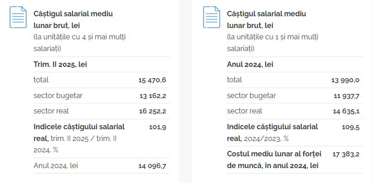 According to the National Bureau of Statistics, the average salary in the Republic of Moldova for 2024 was 13,990 lei, roughly equivalent to €682. By the second quarter of this year, the average monthly salary had increased to 15,470 lei, which is about €788.