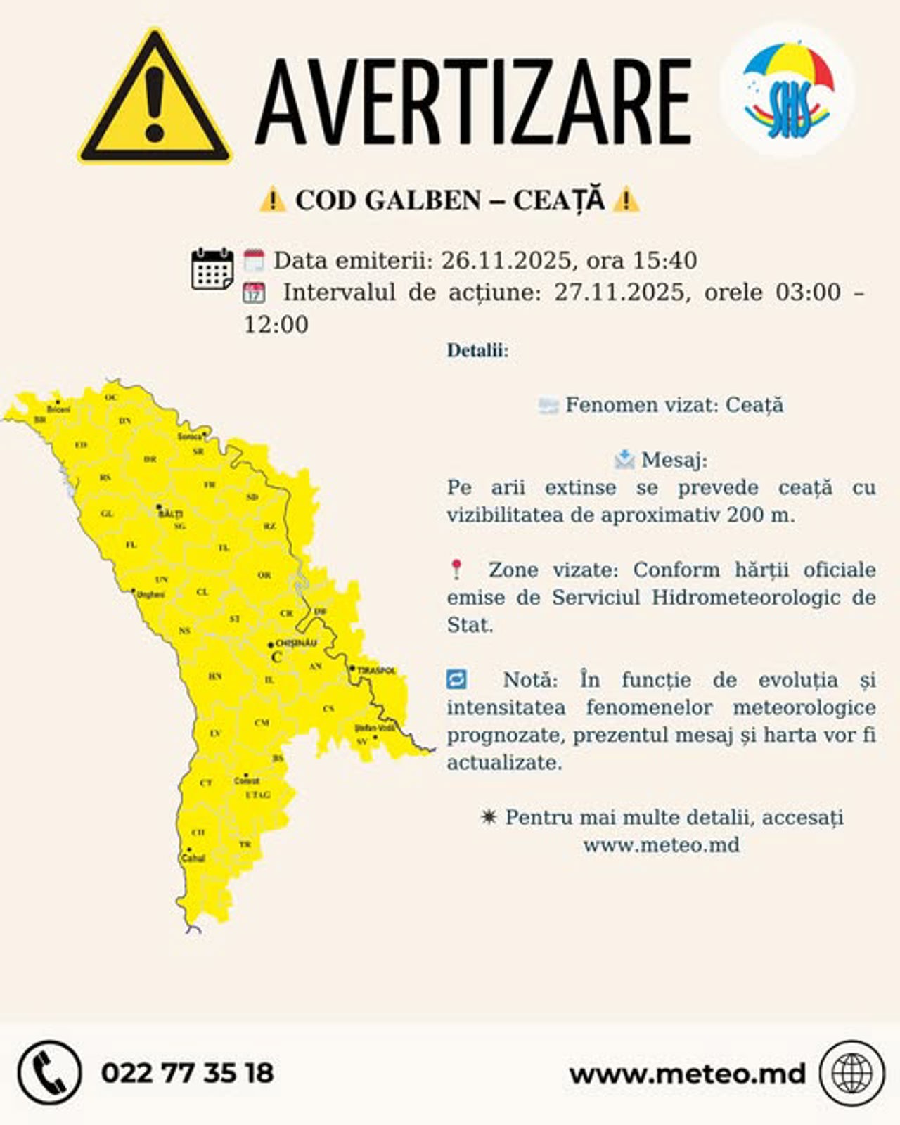The warning is valid throughout the Republic of Moldova.