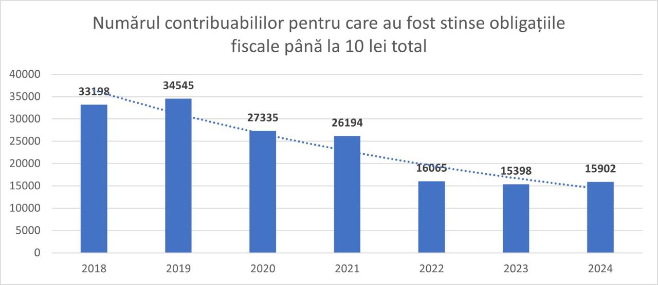 Contribuabilii care au obligații fiscale de până la 10 lei sunt scutiți de aceste datorii. Serviciul Fiscal de Stat (SFS) a definitivat procedura de anulare a restanțelor înregistrate până la data de 31 decembrie 2024.