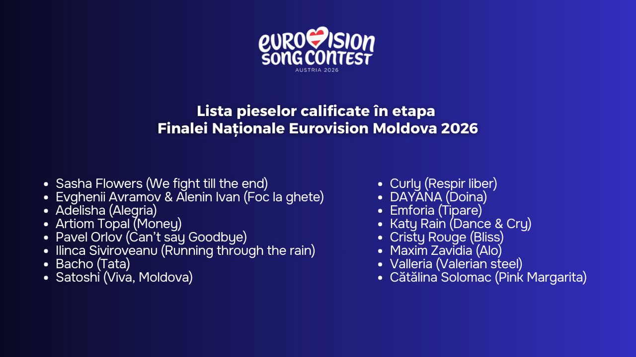 Eurovision 2026: 16 concurenți, calificați în Finala Națională, care va avea loc pe 17 ianuarie