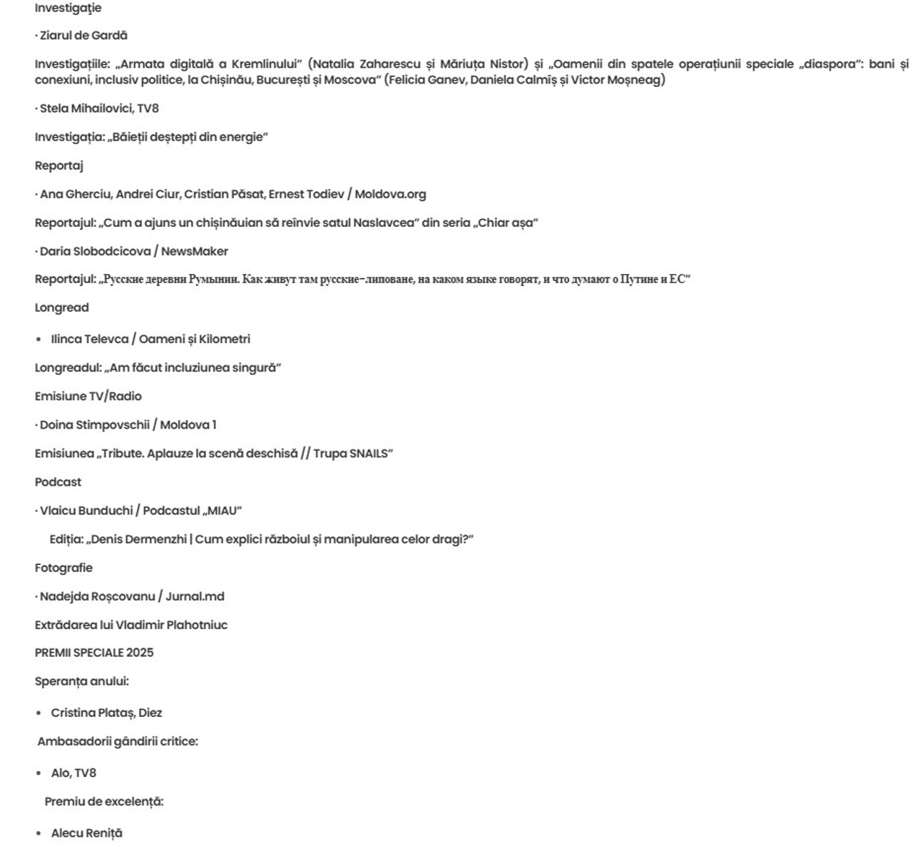 Jurnalista de la Moldova 1, Doina Stimpovschi, premiată la Gala „Jurnaliștii anului 2025”