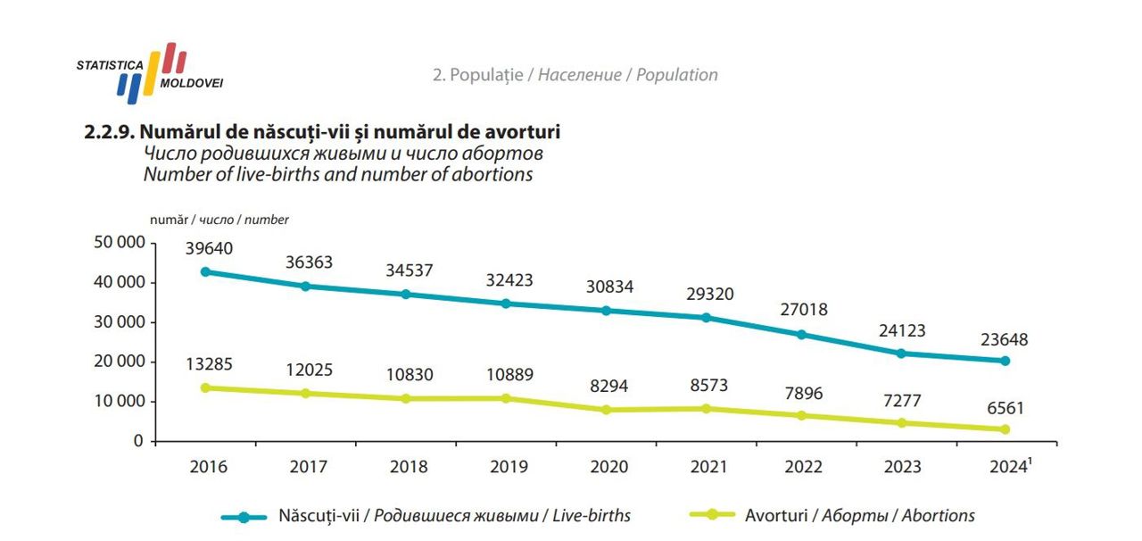Datele Biroului Național de Statistică arată că Republica Moldova înregistrează constant mai multe decese decât nașteri. Anual se nasc aproximativ 24 - 25 de mii de copii, în timp ce numărul deceselor depășește 35 - 36 de mii, ceea ce menține sporul natural pe un trend negativ.