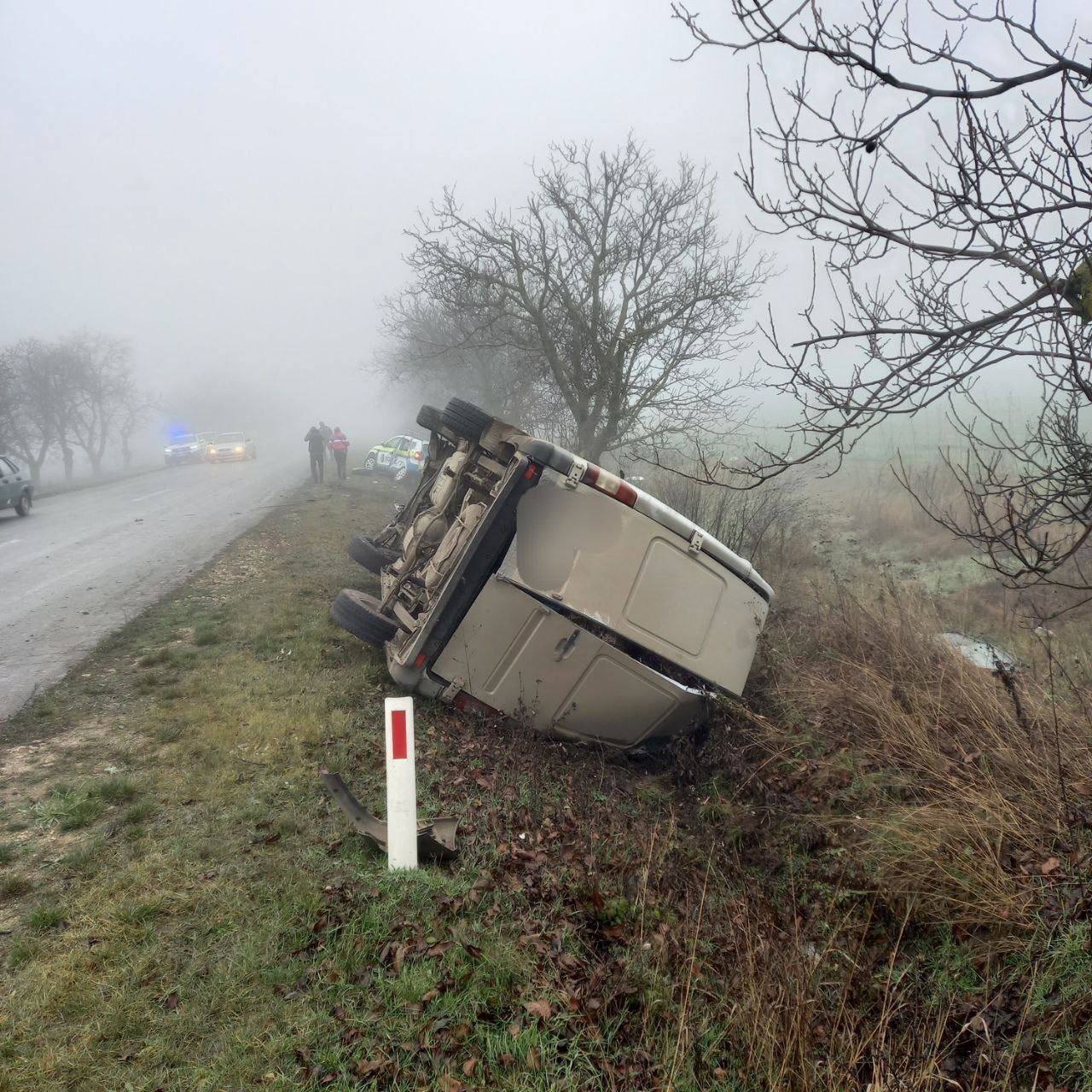 A serious road accident happened on Saturday morning on the R-29 road near Ceadîr-Lunga, involving a police car and a minibus. The collision was so powerful that both vehicles were propelled off the roadway, causing the minibus to overturn into a ditch. Several police officers sustained injuries as a result of the crash. Authorities are currently investigating the circumstances surrounding the accident.