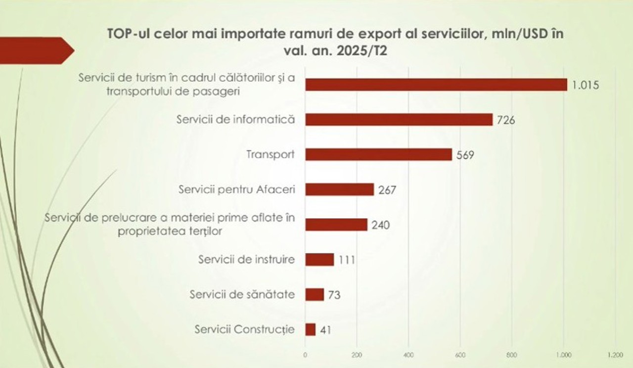 „Exporturile de servicii reprezintă aproximativ 16% din PIB și au depășit cu circa 5% exporturile de bunuri, consolidând poziția sectorului serviciilor drept principal motor al comerțului exterior al Republicii Moldova. Datele disponibile confirmă tranziția către un model de creștere economică bazat pe servicii, cu accent pe domenii intensive în cunoaștere, competențe și valoare adăugată ridicată”, susține MDED.