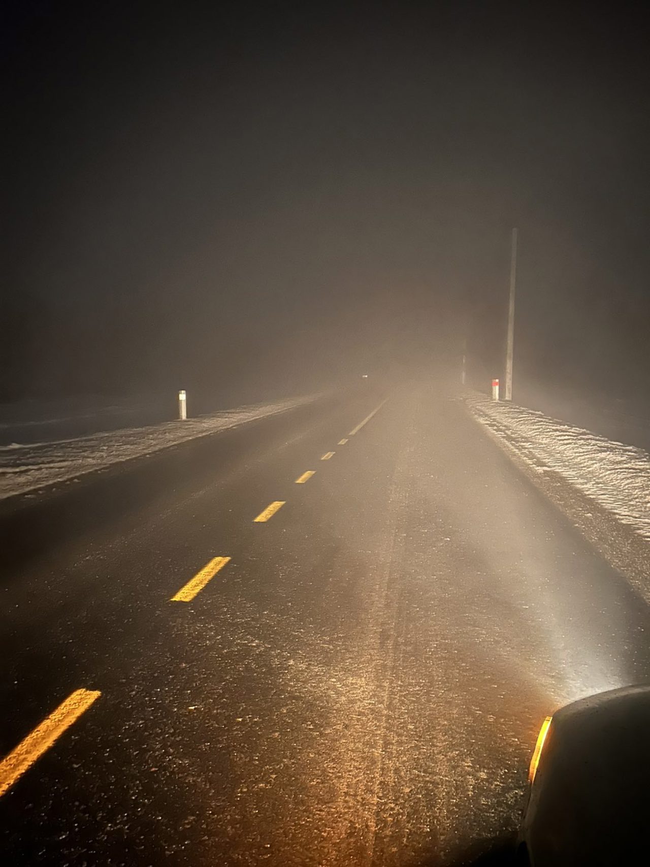 Carosabilul este umed, iar în anumite zone se formează ghețuș.