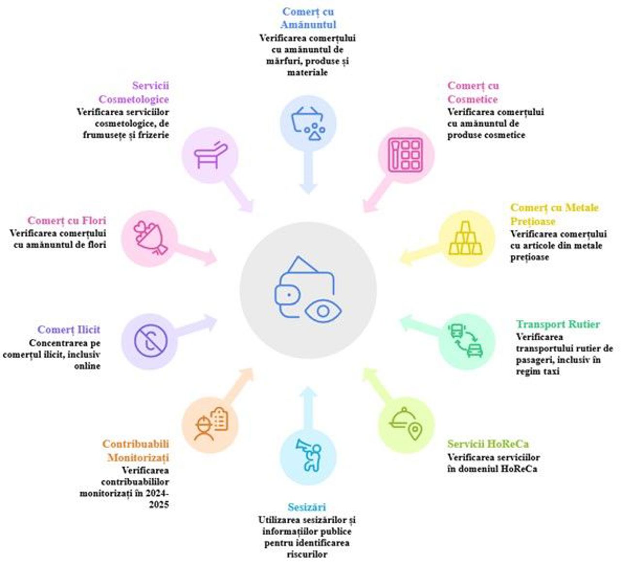 Potrivit instituției, acțiunile de control vor fi desfășurate inopinat, direct la locul desfășurării activităților economice, și vor viza prioritar domeniile cu risc sporit de neconformare fiscală, inclusiv activitățile cu caracter sezonier.