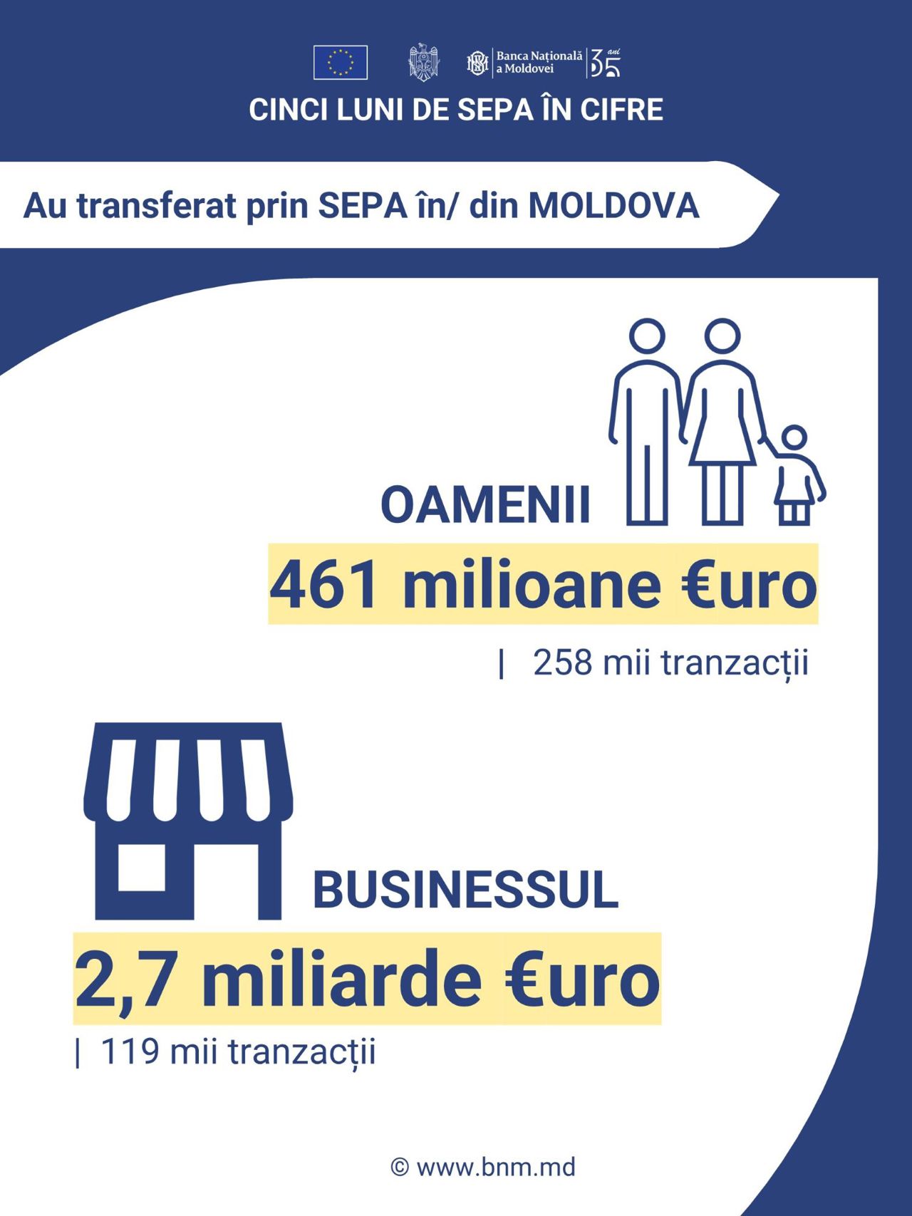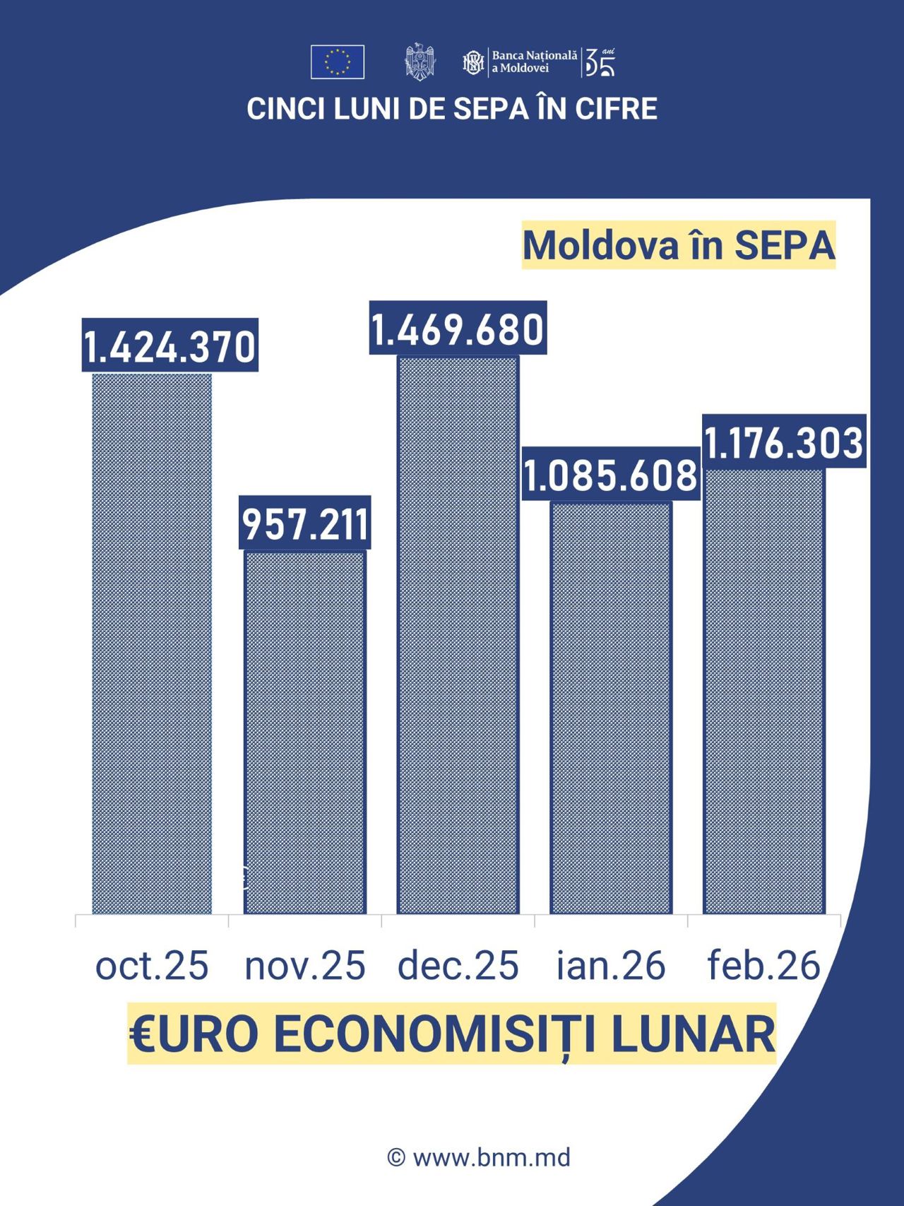 Just a few months after its implementation, 73% of euro transfers made by Moldovans were processed through SEPA. By February 2026, this percentage increased to 81%.