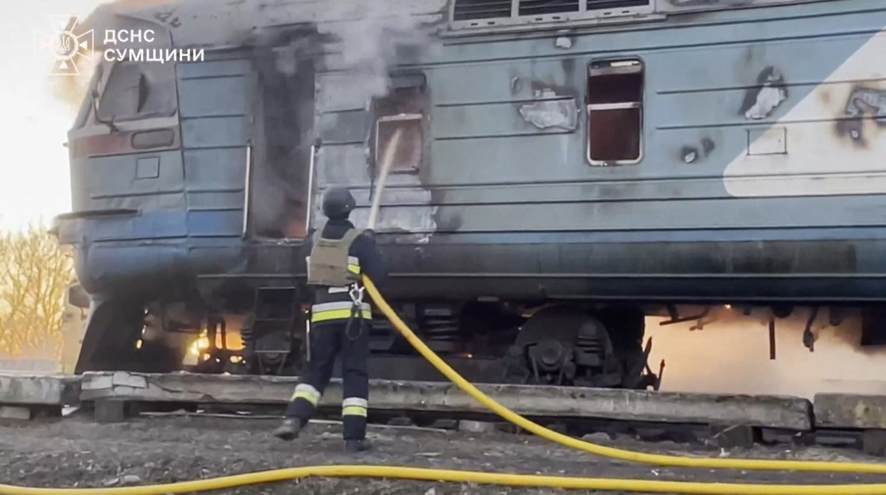 În regiunea Sumî, o dronă rusească a lovit un tren, iar locomotiva a luat foc. Serviciile de urgență au ajuns rapid la fața locului și, în pofida riscului unor atacuri repetate, au stins incendiul. Din fericire, nu sunt victime.