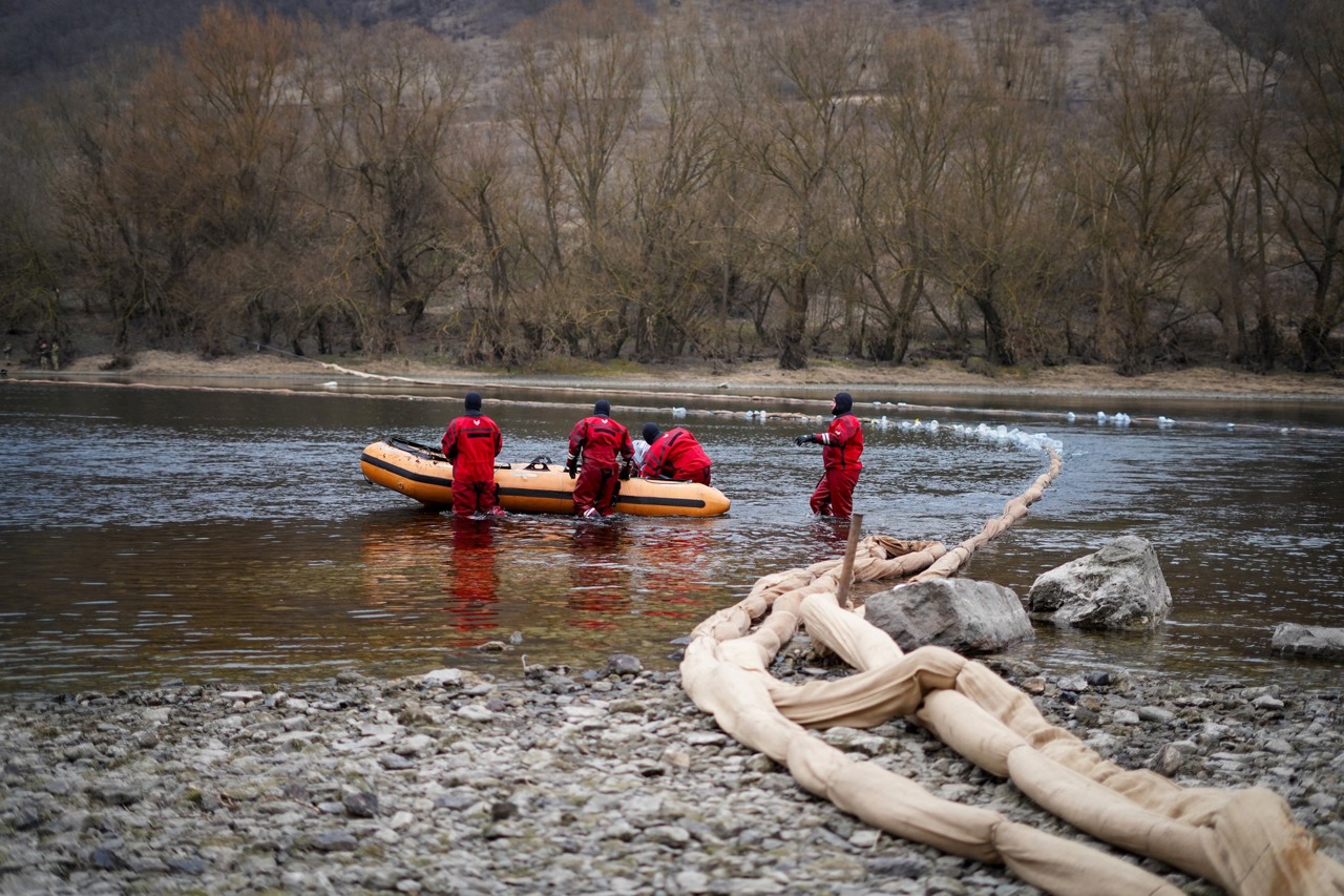 „Pe data de 7 martie, atacul brutal al Rusiei asupra complexului hidroenergetic Novodnestrosk a provocat scurgerea masivă a produselor petroliere în Nistru. Ceea ce vedem astăzi în râu nu este un accident natural, ci consecință directă a războiului de la granița noastră”, a declarat ministrul Mediului.