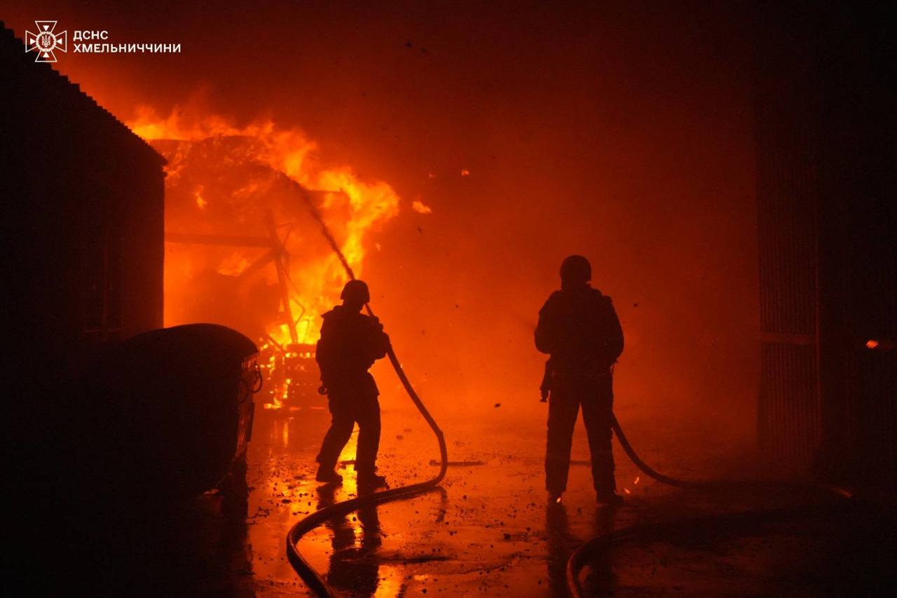 În Hmelnițk, dronele inamice au vizat teritoriul unei întreprinderi din oraș, unde au izbucnit incendii de proporții. În urma căderii fragmentelor unei drone, două persoane au fost rănite într-o localitate din raionul Kameneț-Podolsk, acestea primind îngrijirile medicale necesare.