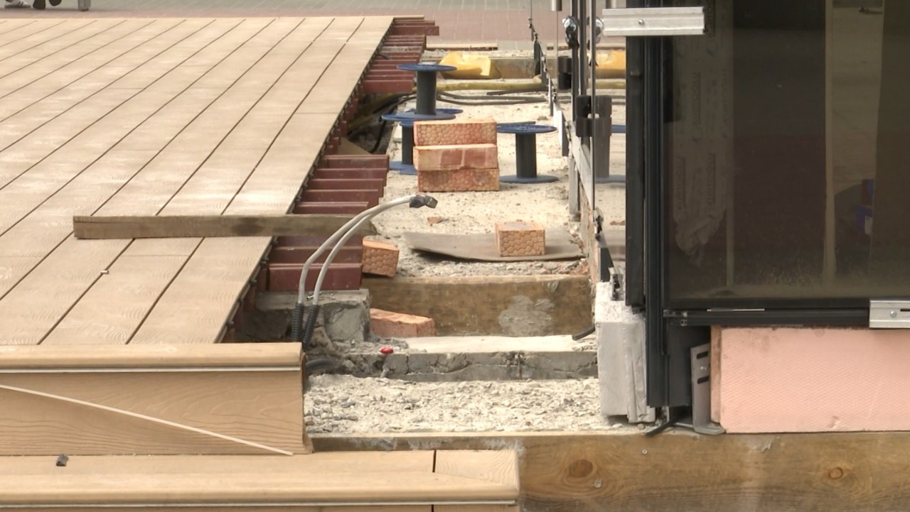 În mijlocul locului, unde nu demult se afla havuzul, se întinde acum o terasă nou amenajată. Alături este o construcție cu pereți moderni și geamuri mari de sticlă. Cel mai probabil, va fi un restaurant.